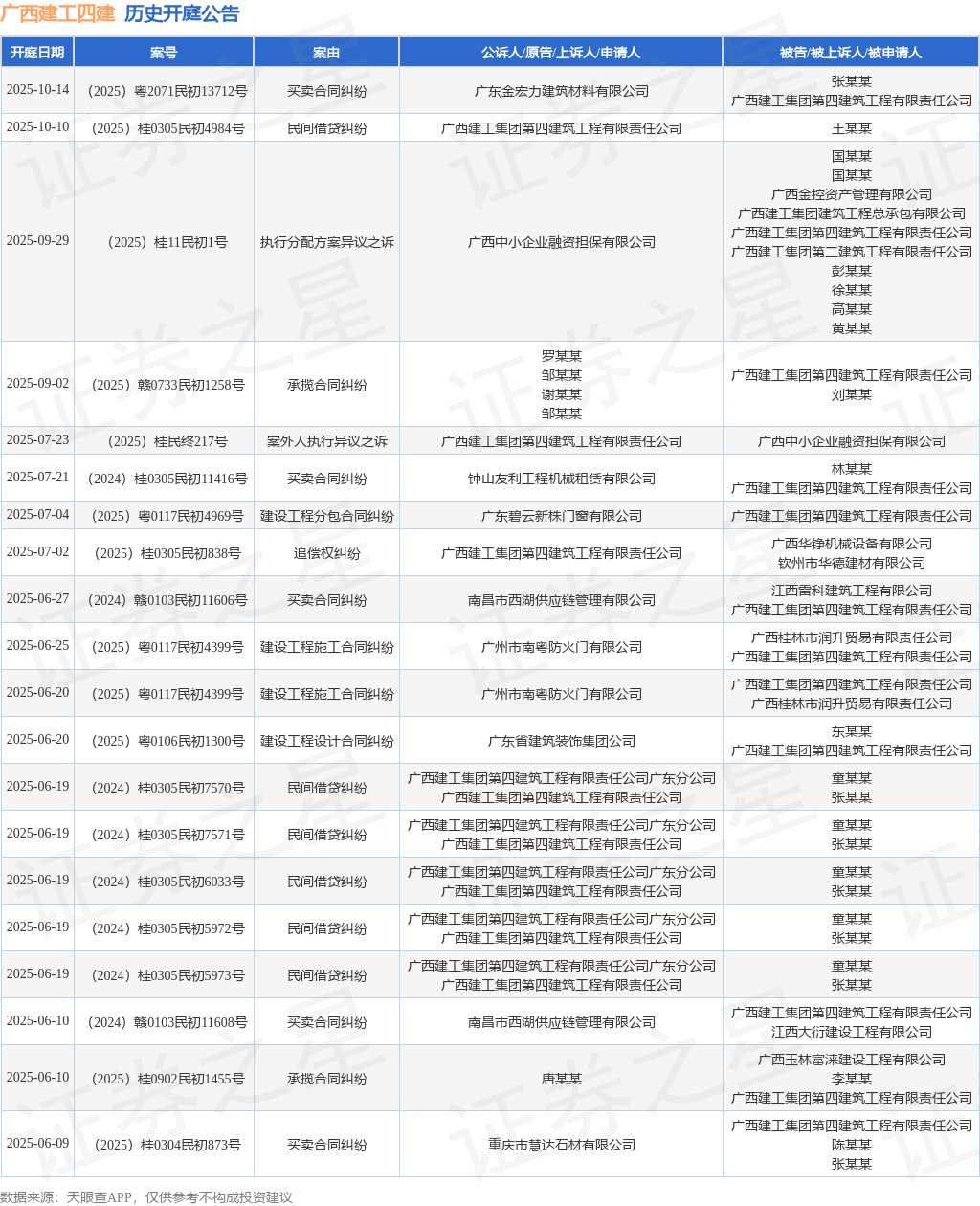 本站消息,根据天眼查APP显示,近日公布了一则广西建工集团第四建筑工程有限责任公司作为被告/被上诉人的开庭公告,详细内容如下: